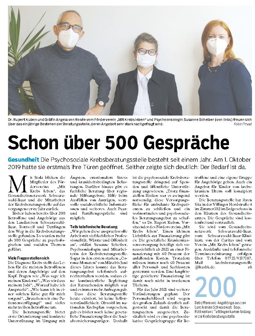 Die Psychosoziale Krebsberatungsstelle besteht seit einem Jahr. Am 1. Oktober